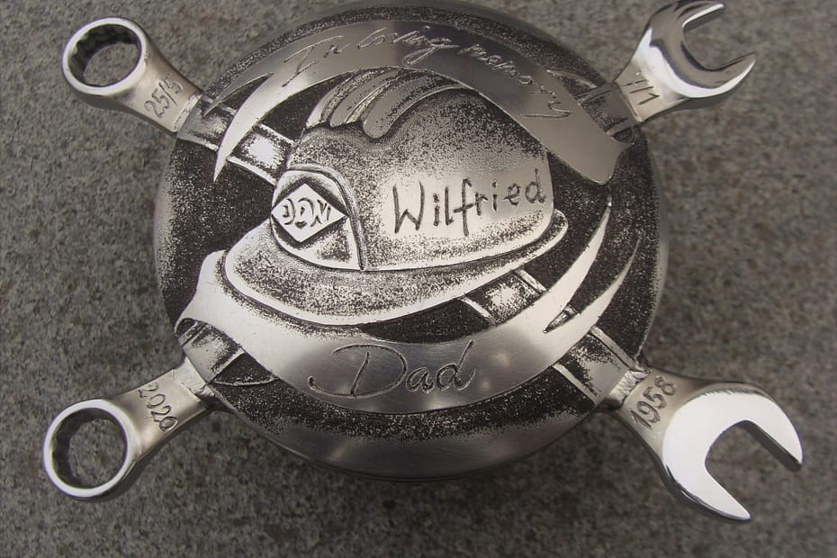 ‘In Loving Memory, Dad’by Paul HolbrechtNovember 10, 2020November 14, 2020 Commemoration, relief engraving in a custom made H-D Sportster chopper air filter cover.