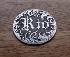 One of a kind hand engravings in metal. Contact me if you would like to buy one of the pieces listed below or place a custom order for your motorcycle part, knife, watch or other metal piece.