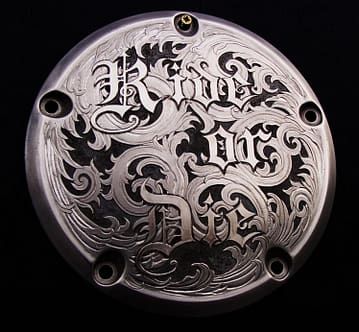 Hand engraved, genuine Harley-Davidson derby cover for Twin Cam, price: €650 (registered shipping not included)