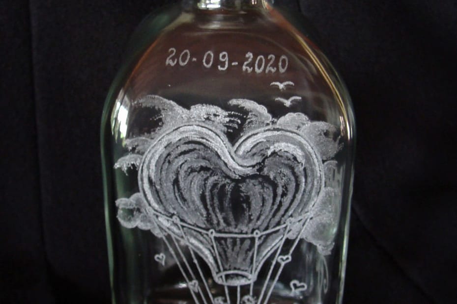 ‘Yo & Dorien’ hand engraved Gin bottle.